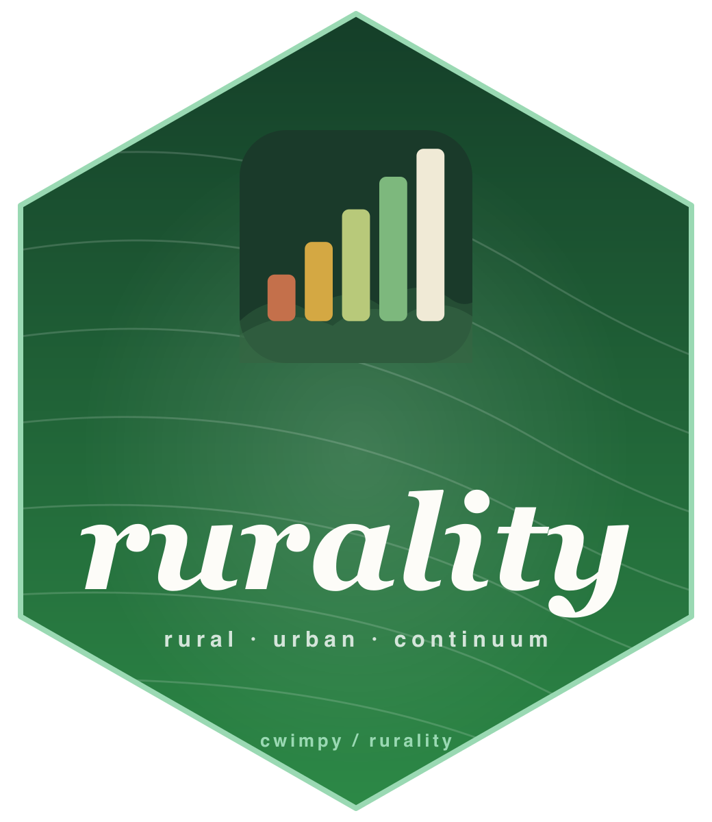 Rurality classification and scoring for U.S. counties and ZIP codes. Provides USDA Rural-Urban Continuum Codes (RUCC 2023), Rural-Urban Commuting Area codes (RUCA 2020), and a composite rurality score for all 3,235 U.S. counties. Built to make rurality data easy to use in research without manually downloading and merging USDA spreadsheets. Now available on CRAN.