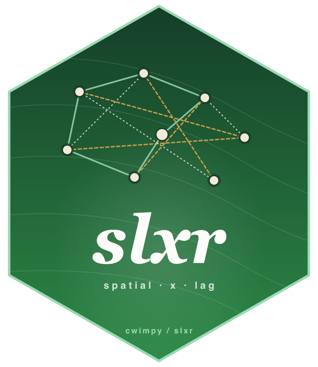 Spatial-X (SLX) regression models for applied researchers. Provides a formula-based interface with first-class support for variable-specific weights matrices, higher-order spatial lags, temporally-lagged spatial variables, and tidy direct/indirect/total effects decomposition with no matrix inversion or simulation required. Built to center SLX rather than treat it as a consolation prize for SAR, and to make the variable-specific-W approach from Wimpy, Whitten, and Williams (2021) easy to actually use. modelsummary-compatible via tidy() and glance() methods. Now available on CRAN.